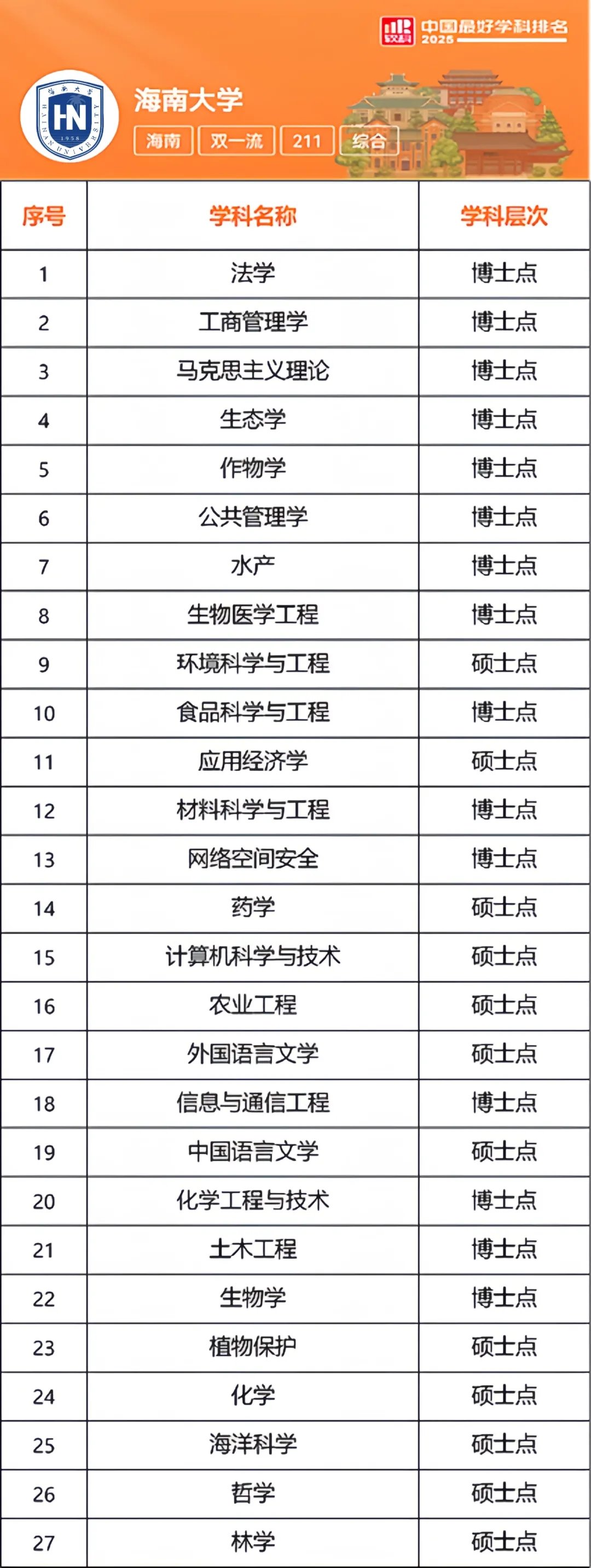 2025软科中国最好学科排名名单公布 海南3所高校榜上有名