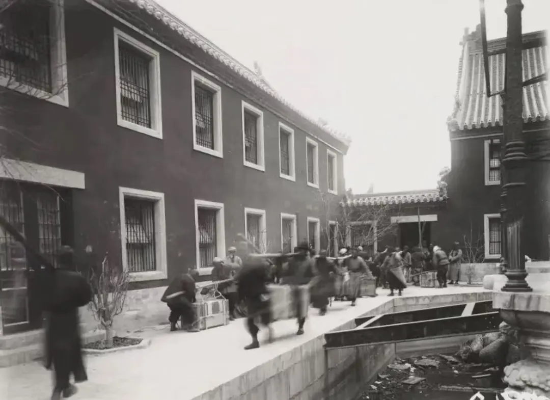 延禧宫库房前搬运文物。(图/故宫文物南迁纪念展)
