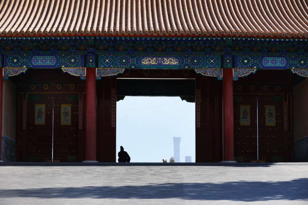 2019 年,北京。一名市民坐在故宫门前。宫门内外,是穿越古今的灿烂文明。(图/聂一凡)