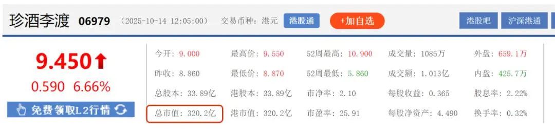 从目前来看,国内A股市场对白酒企业上市设有严格审核标准,要求连续盈利且规范公司治理结构。部分白酒企业因未能满足主板上市条件,转向港股或新三板,但估值普遍偏低。例如珍酒李渡2024年净利润同比下滑43.12%,港股白酒第一股最新市值为318亿港元,远低于A股水平,比如古井贡酒的A股市值就高达828亿元,且不说茅台和五粮液的1.82万亿元和4732亿元,泸州老窖、汾酒、洋河都是千亿以上市值,珍酒李渡的市值甚至不如迎驾贡酒。