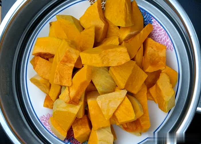 第一步:把切好的南瓜上蒸锅蒸10-15分钟。时间上主要看您切的南瓜的多与少,薄与厚。若是您实在掌控不了时间,那就用筷子戳两下煮好的南瓜,看看是不是达到“烂熟”的程度了。