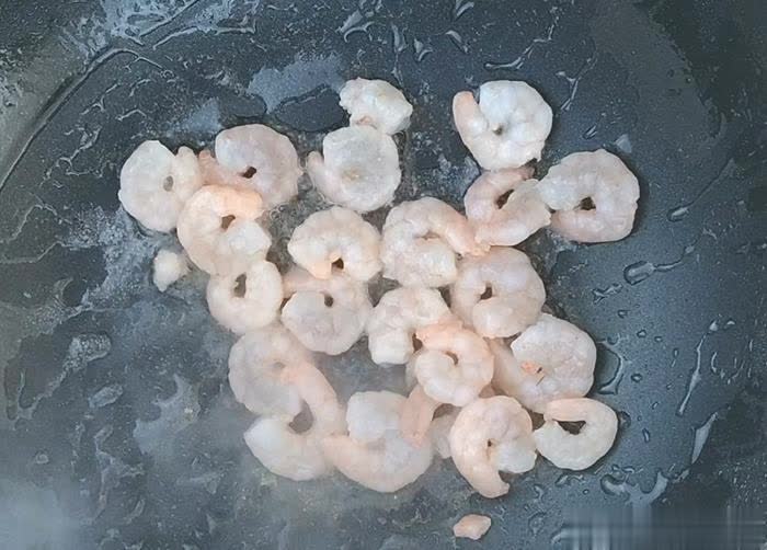 第一步:锅中热油3成热,把虾仁倒入锅中炒至周身呈现微红。一般这个过程也就1分半钟左右。