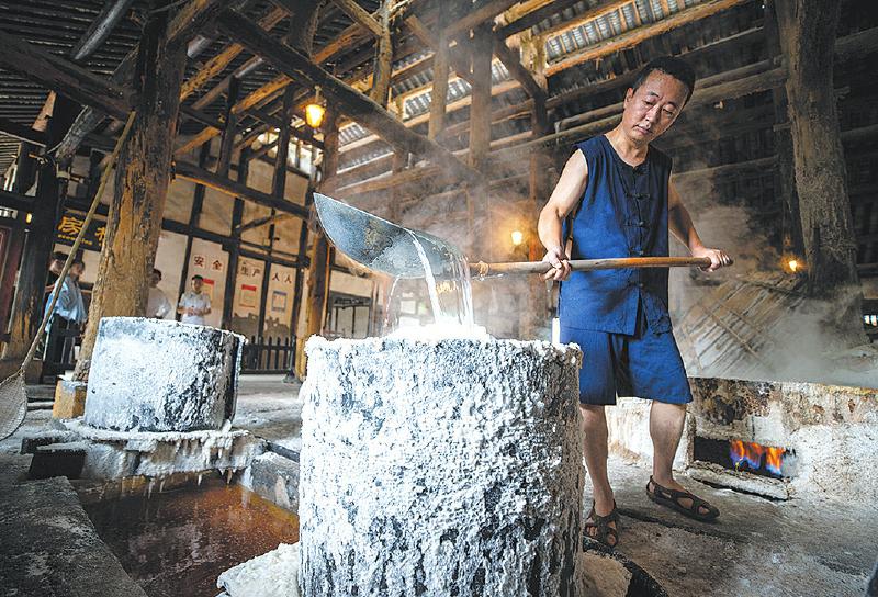 如今,作为省级非遗“自贡井盐传统熬制技艺”代表性传承人,游强守护的已不仅是眼前这口盐锅。那八字制盐秘诀,正被他系统整理成文;他参与多部纪录片拍摄,向观众讲述井盐故事;景区内古法盐产品持续热销,他便计划开发更多非遗衍生品,让盐文化真正融入当代生活。