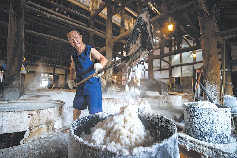 这份守护从不是浪漫的怀旧。清代诗中“六月煎盐烈火旁”的艰辛,游强体会得最深:夜班12小时,凌晨三四点最难熬。他在这灶房已度过千余个这样的夜晚。经年劳作,让他的双手在冬日皲裂出深深的纹路,清洗时甚至要用刷子才能洗干净。与朋友喝酒划拳时,他总下意识地将手心朝下,不愿让人看见这双写满沧桑的手。