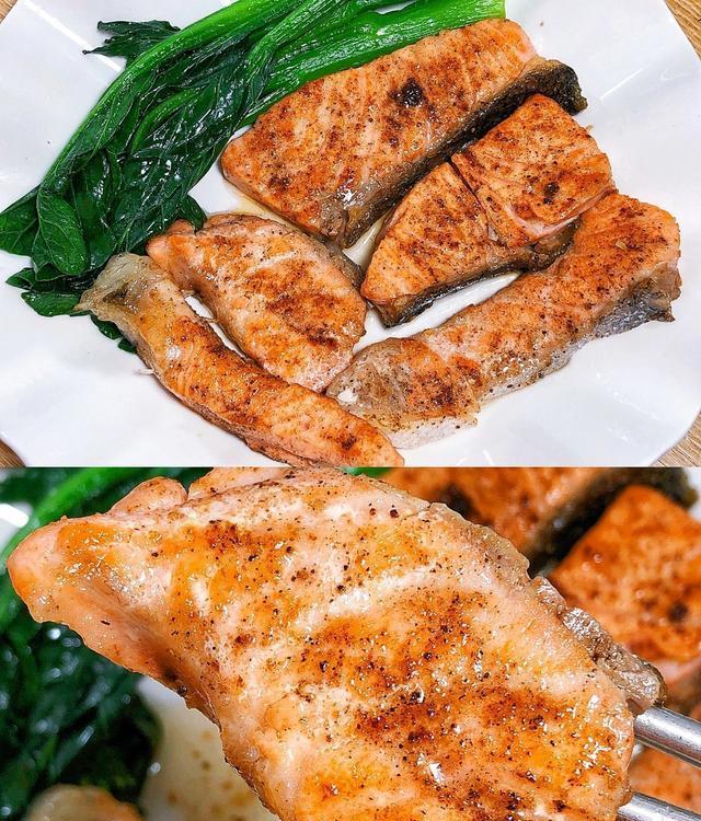 二、香煎三文鱼:香嫩营养,护心“黄金肉”