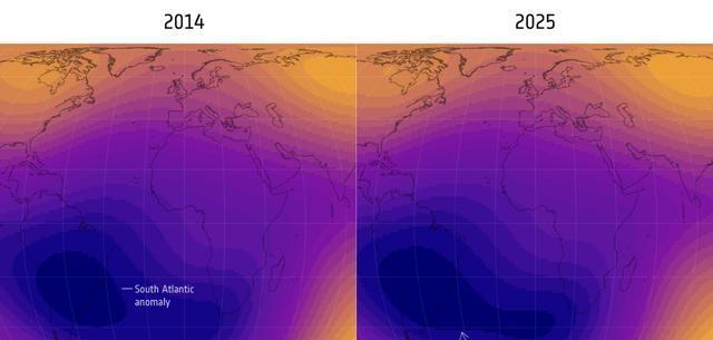 按理说,这是地球的正常节奏。可问题在于,我们现在生活的这几百年,正好赶上了磁场剧烈波动的阶段。过去两百年,地磁强度整体下降了大约9%。尤其是那片被称为“南大西洋异常区”的地方,衰退得最快。