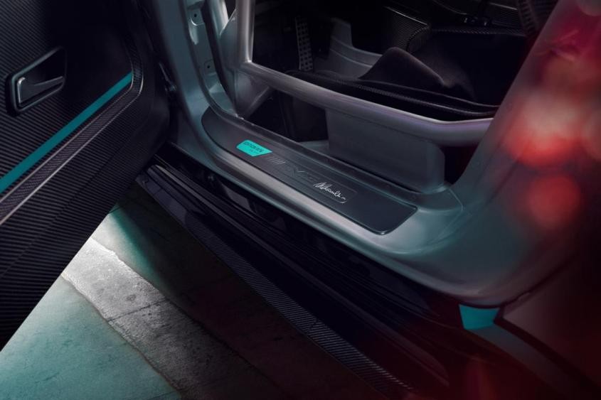 内饰部分,加入绿色点缀以呼应外观,同时手绘星形图案、马石油标志细节、哑光碳纤维表面,以及Kimi Antonelli亲笔签名和标志性的“1 of 30”徽章,都彰显着该车的独特气息。