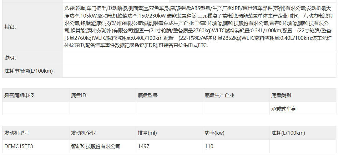 动力方面,这台车搭载的是1.5T插电式混合动力系统,而不是增程式混动系统,发动机最大功率110千瓦,配备来自宁德时代和蜂巢能源的三元锂电池组,标配65度大电池,CLTC纯电续航370公里,CLTC综合续航1400公里,采用800V高压平台打造,支持5C超快充,20%-80%充电时间仅需12分钟。