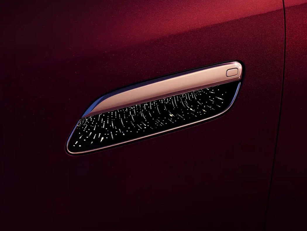外观方面,车头部分对很多人来说还是比较熟悉的,基本上就是将岚图梦想家的前脸直接拿过来用了,这点跟极氪9X拿极氪009MPV的外形来用是一样的,实践证明,这种在MPV上算不上协调的前脸造型,放在SUV上,配上长车头还是挺好看,挺大气的,34根直瀑式镀铬饰条营造出来的气场其实是不弱于库里南上的帕特农神庙立柱所带来的视觉冲击。