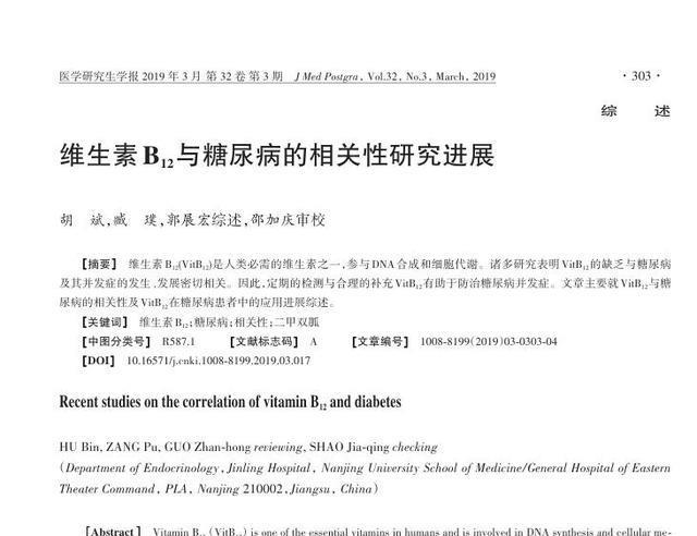 [1]胡斌,臧璞,郭展宏,等.维生素B12与糖尿病的相关性研究进展[J].医学研究生学报,2019,32(03):303-306.
