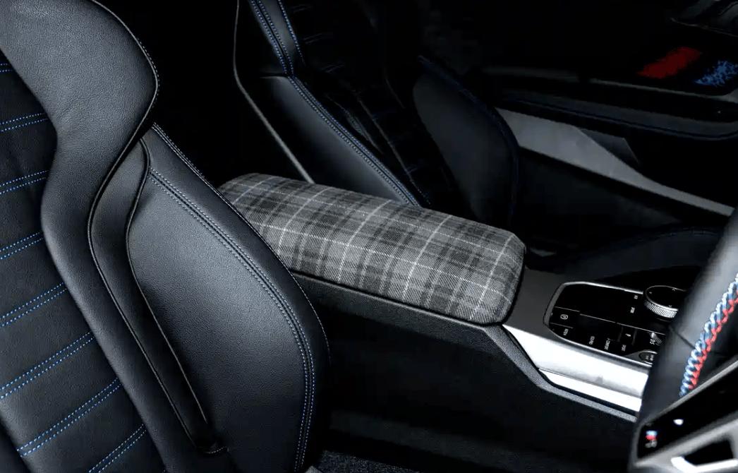 内饰方面在中控扶手区域采用了Überkaro格纹面料包裹,致敬历史上的325iS。
