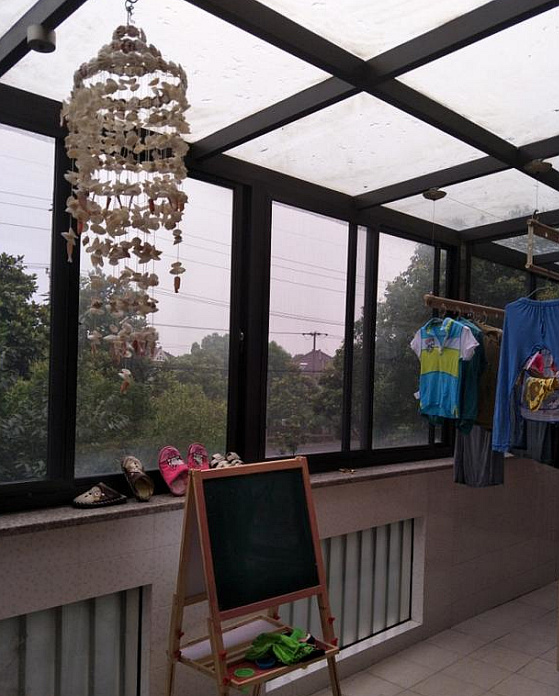 阳光房,外面是一大片树林,景色非常不错,让人心旷神怡!