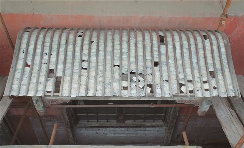养心殿室内空间大,前后檐均设有窗户以便采光。然而,这座大殿坐北朝南,北侧的后檐窗采光条件较弱。若在此设置完全不透光的雨棚,虽能遮雨,却会进一步影响室内亮度。而使用明瓦作为雨棚棚顶,则巧妙解决了这一矛盾:光线可透过瓦片照射到后窗,既遮风雨又不阻光照,近似于现代的玻璃顶,成为养心殿建筑中一处不显眼却充满智慧的细节。