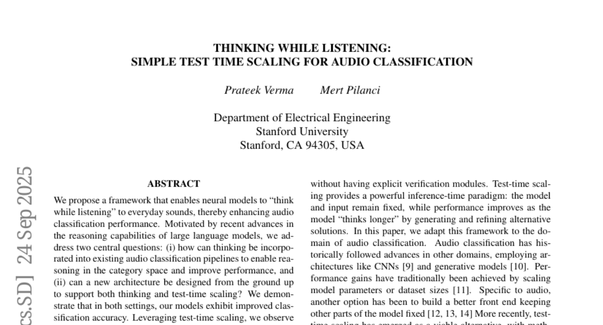 这项由斯坦福大学电气工程系的Prateek Verma和Mert Pilanci教授领导的研究发表于2025年9月,论文编号为arXiv:2509.19676v1。有兴趣深入了解的读者可以通过该编号在arXiv平台查询完整论文。 当你在厨房里听到一个声音时,大脑会