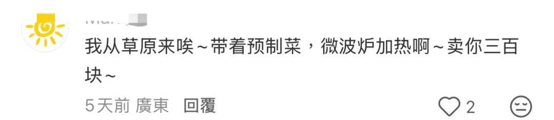 “我从草原来唉~带着预制菜,微波炉加热啊~卖你三百块~”