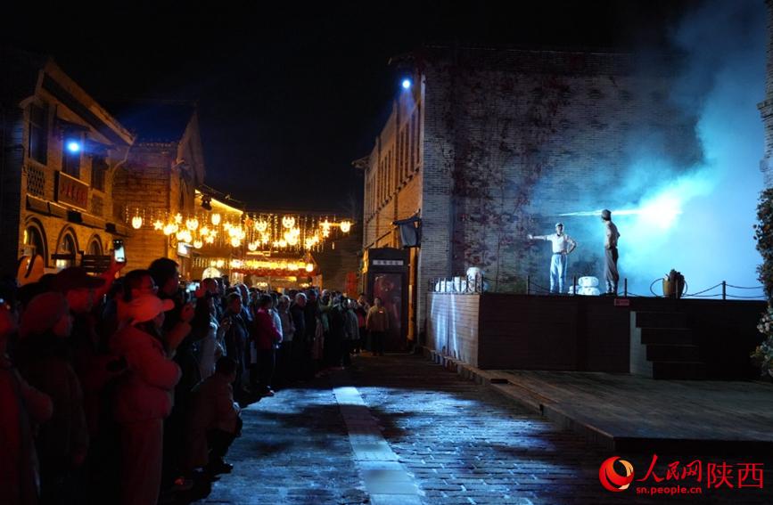 “我们打破了观看与表演的边界,观众既是看戏人,也是剧中人。”《延安十三年》艺术团团长张晋介绍,在每一篇章转场演出时,观众会跟随演员的引导,在行走观看演出的过程中,参观游览街区,这种体验给人们营造出“戏中戏”的氛围。