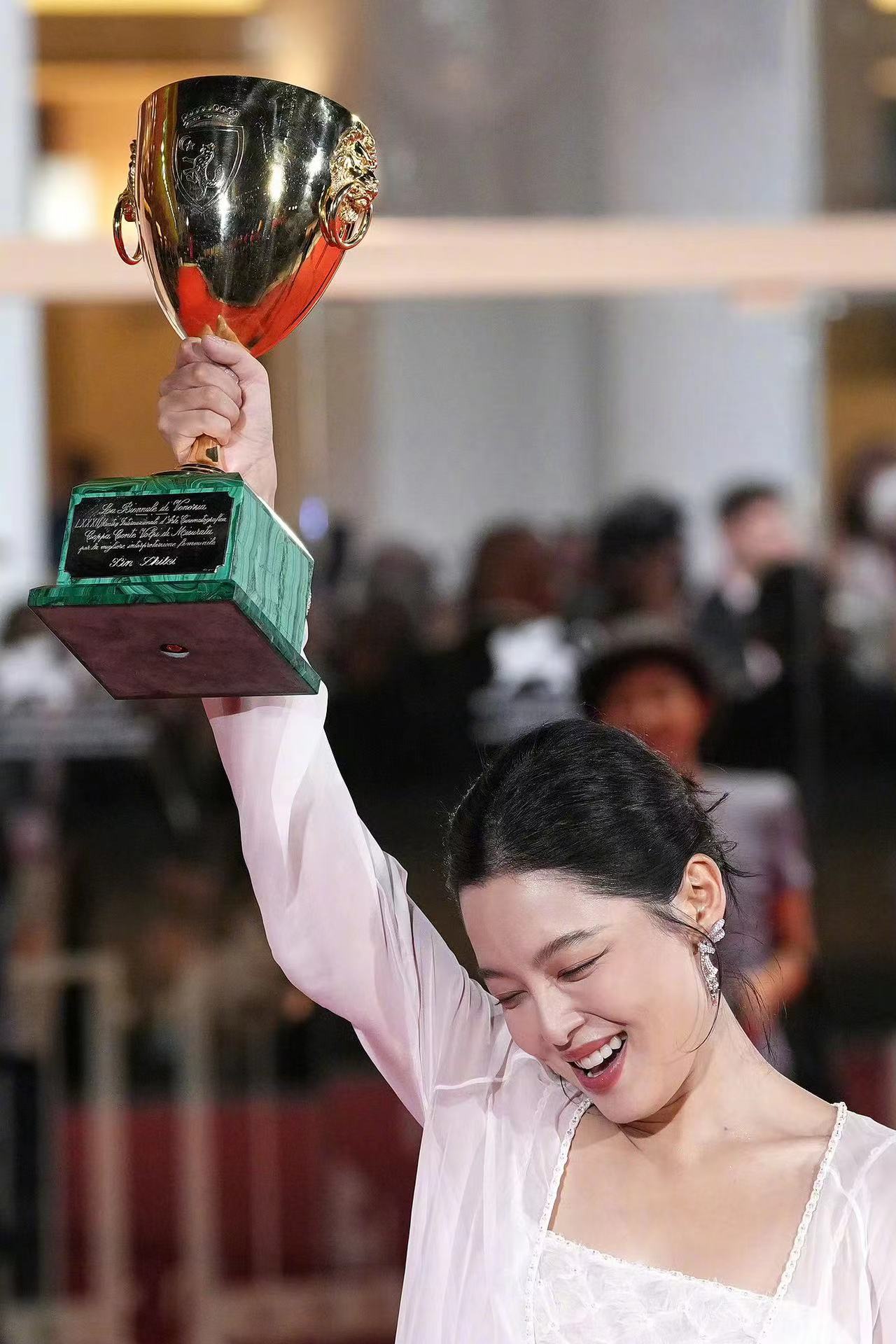 捧着沉甸甸的辛芷蕾击碎了很多85花和大花们的内心,因为这两代女演员都没有人获得过这个奖,获得过这个奖的是巩俐和叶德娴,所以有网友喊李冰冰、周迅和章子怡赶紧进组拍戏,获奖靠实力也要靠运气,假如遇到一个强大的女演员同台竞争,估计是很难获奖的,而这届威尼斯电影节注定要成为辛芷蕾的荣耀时刻,她值得拥有。