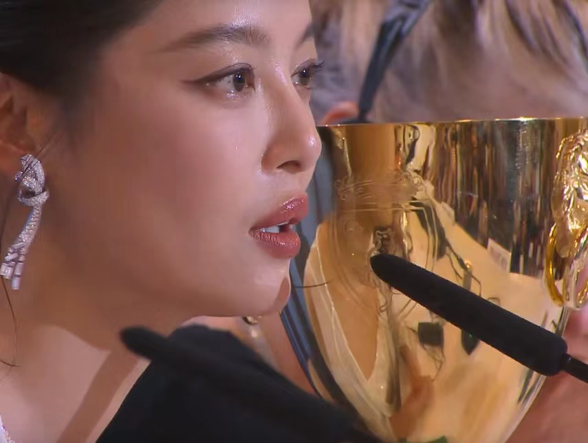 评委会成员赵涛给她颁奖,2018年辛芷蕾曾经发微博表示自己要成为国际巨星,她实现了这个梦想,站在国际舞台领奖。