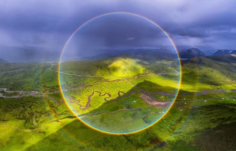要看到全圆彩虹,还得凑齐 “三个条件”。首先得有 “好高度”,得站在能 “越过” 地面的地方,不然下半圈肯定被挡;其次水滴要 “听话”,空气里的小水滴得大小均匀,不能有的大有的小,不然光会被拆得乱七八糟,彩环就不清晰了;最后太阳得 “站对位置”,太阳高度角得差不多 42 度,太高或太低,折射出来的光都不够亮,彩虹就没那么显眼。