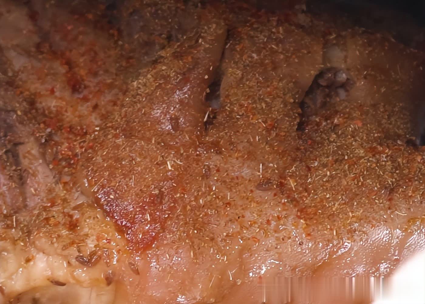孜然烤羊腿具有独特的香味和口感。羊腿经过烤制后外皮酥脆,内里肉质鲜嫩多汁,散发出浓郁的香气。