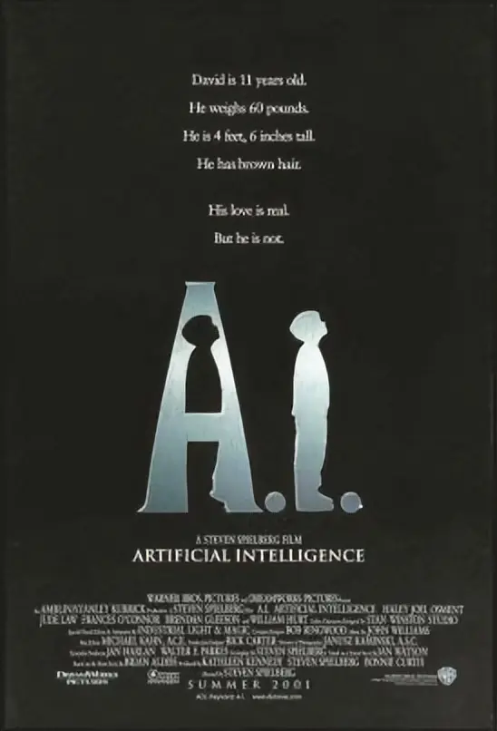 电影《人工智能》海报 20多年前,由史蒂文·斯皮尔伯格执导的《人工智能》上映时,观众看到的是一个披着科幻外衣的寓言故事:一个拥有情感的机器人男孩,在冰冷的世界中踏上追寻母爱的旅程。这部电影在当时并未