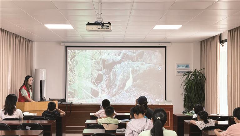 活动现场,室内科普环节率先拉开帷幕。自然教育导师借助丰富的视频与影像资料,将生态站的“监测黑科技”直观呈现在亲子家庭面前:有被称为“夜视眼”的红外相机,清晰捕捉到豹猫、野猪等野生动物夜间活动的珍贵画面;有声闻监测仪,精准录制下不同鸟类独特的“语音身份证”。孩子们不仅在趣味讲解中学会了实用的鸟类辨认技巧,更真切感受到现代科技为生态监测与保护带来的助力,对“科技守护自然”有了全新认知。