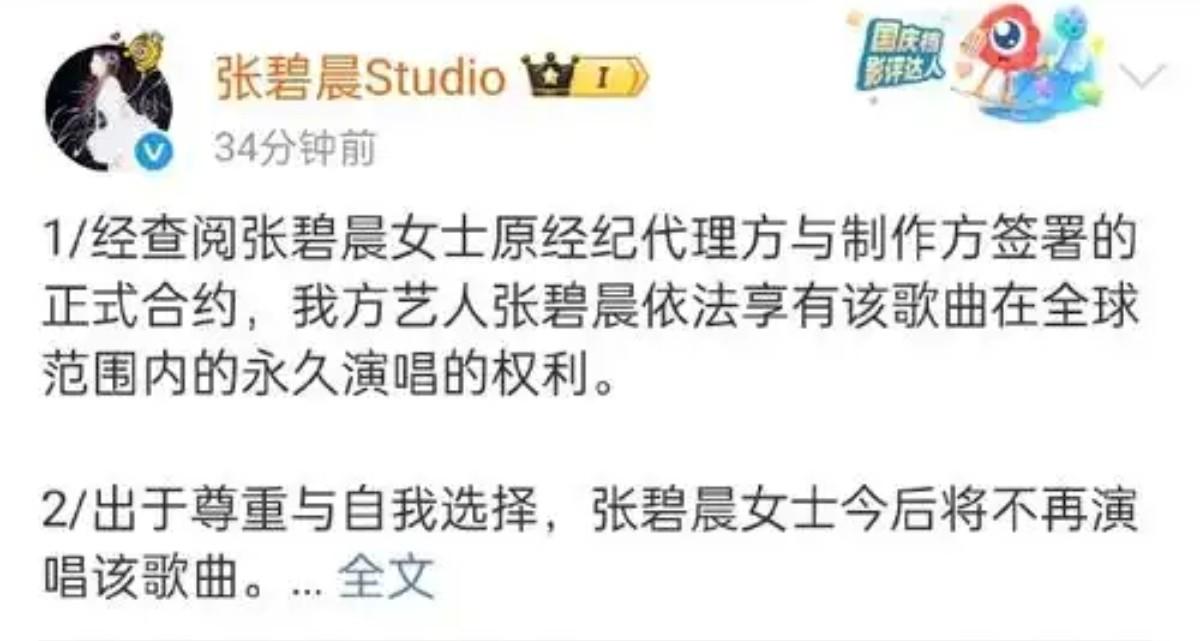 《年轮》作为张碧晨最具代表性的一首歌,如今连唱都不能唱了,难道不是一种损失吗?