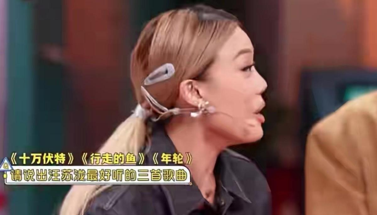 玩游戏时,容祖儿被问到汪苏泷最好听的三首作品,她先是说了《十万伏特》,又说了《行走的鱼》。