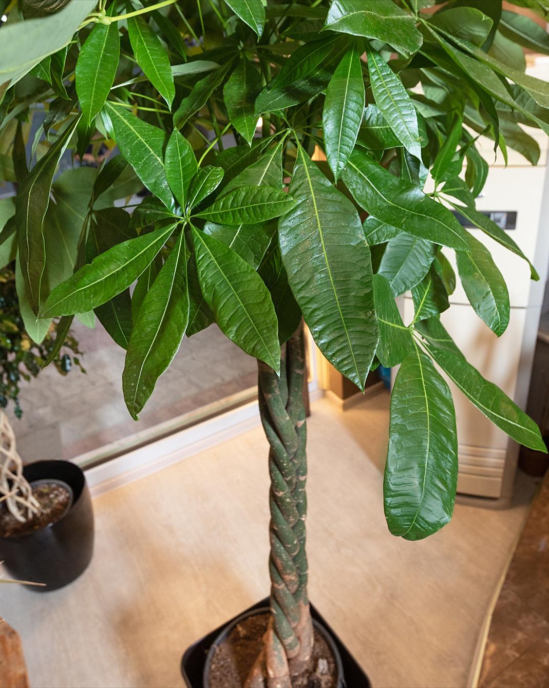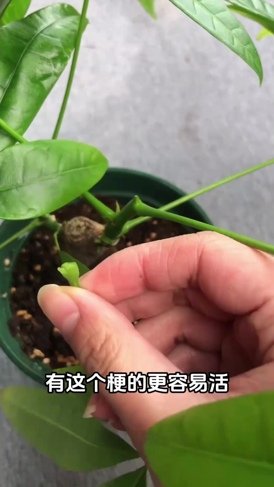 想要养发财树,我们只需要剪下一个叶片,带梗的叶片,然后泡在水瓶子里面,放在阴凉通风的地方。