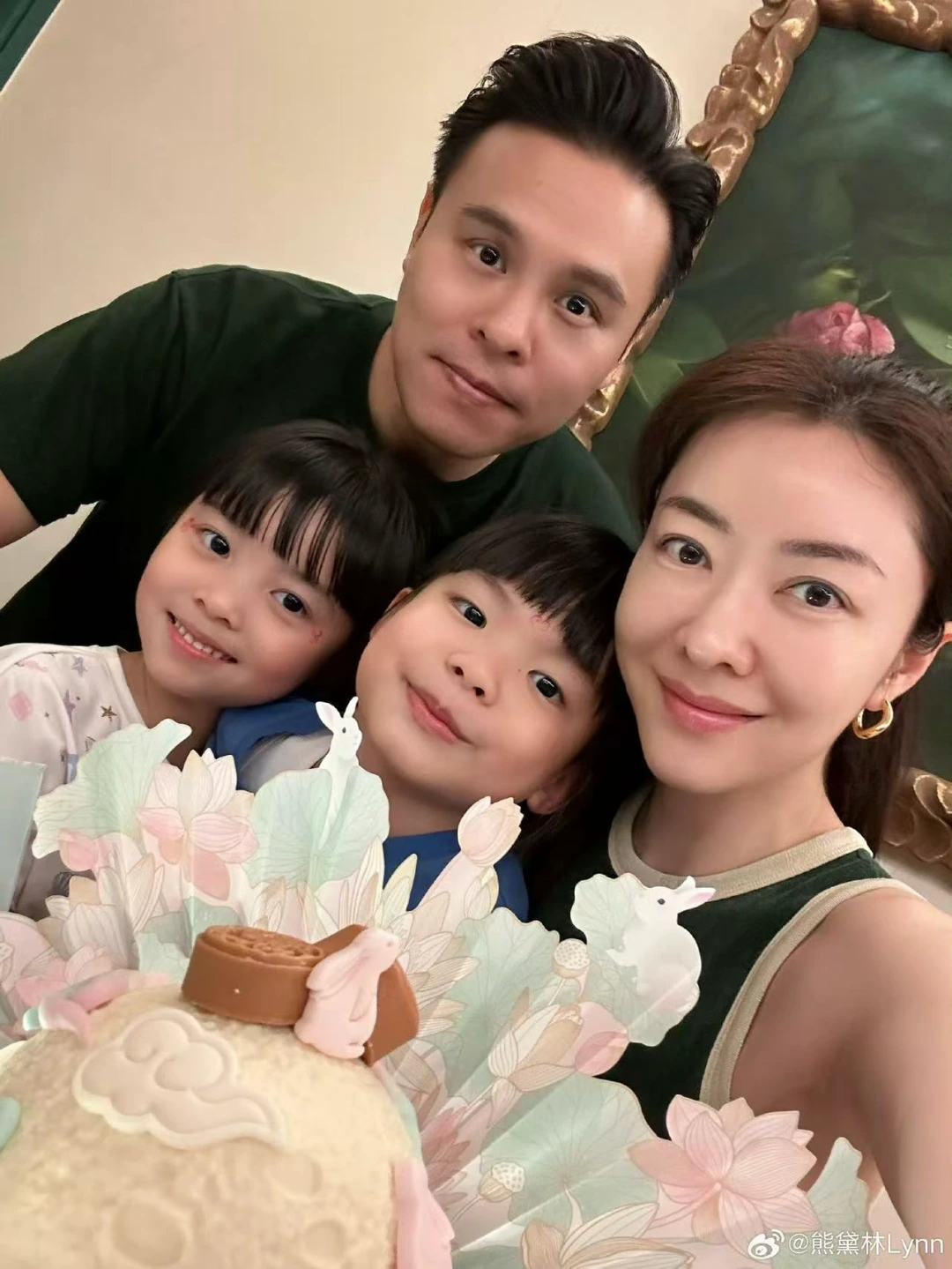 01 熊黛林前几天45岁生日,晒出很多照片。 淡妆照很漂亮,眼角有一点皱纹,没有刻意修饰。 和丈夫郭可颂的亲密贴脸照: 一家四口合影,两个女儿穿着中式小旗袍,都在换牙期,童真可爱。 俩女儿2018年出生,是异卵