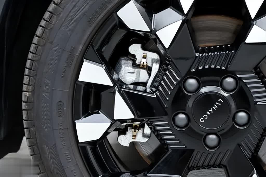 前脸部分采用了分体式大灯结构,上方的“破晓之光”日间行车灯由12颗高亮LED灯珠组成,呈折线式造型,点亮后极具辨识度。主灯组位于下方,与中网形成贯穿式视觉效果,支持自动远近光切换与辅助照明功能。格栅区域依旧保留了领克家族式设计语言,采用横向拉伸的贯通造型,与大灯融为一体,在视觉上拉宽了车头比例,使前脸更显低趴与宽阔。格栅内部采用亮黑蜂窝纹理设计,中间悬浮“LYNK&CO”字标,细节质感突出。前包围两侧融入导流槽装饰,并辅以橙色饰条点缀,为原本稳重的前脸增添了几分年轻气息与运动活力。整体视觉观感干净利落,没有复杂冗余的造型堆叠,属于典型的“简洁而有力量”的设计思路。