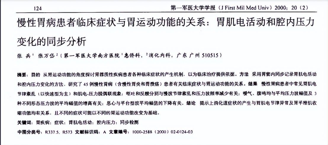 [1]张兵,张万岱.慢性胃病患者临床症状与胃运动功能的关系:胃肌电活动和腔内压力变化的同步分析[J].第一军医大学学报,2000