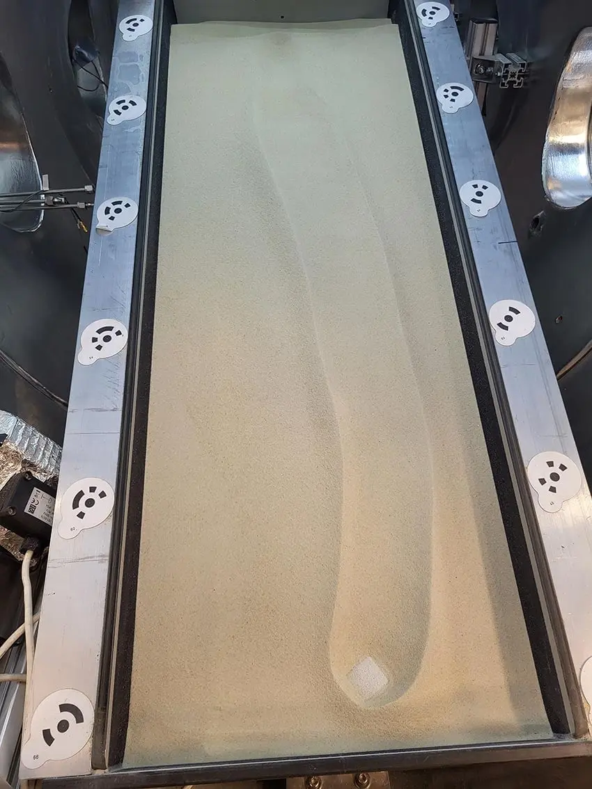 实验中,科学家们在类火星环境下观察到CO₂冰块自发钻入沙丘。“过程非常像电影《沙丘》里的沙虫。”研究者Lonneke Roelofs表示。她的成果已发表于《地球物理研究快报》。