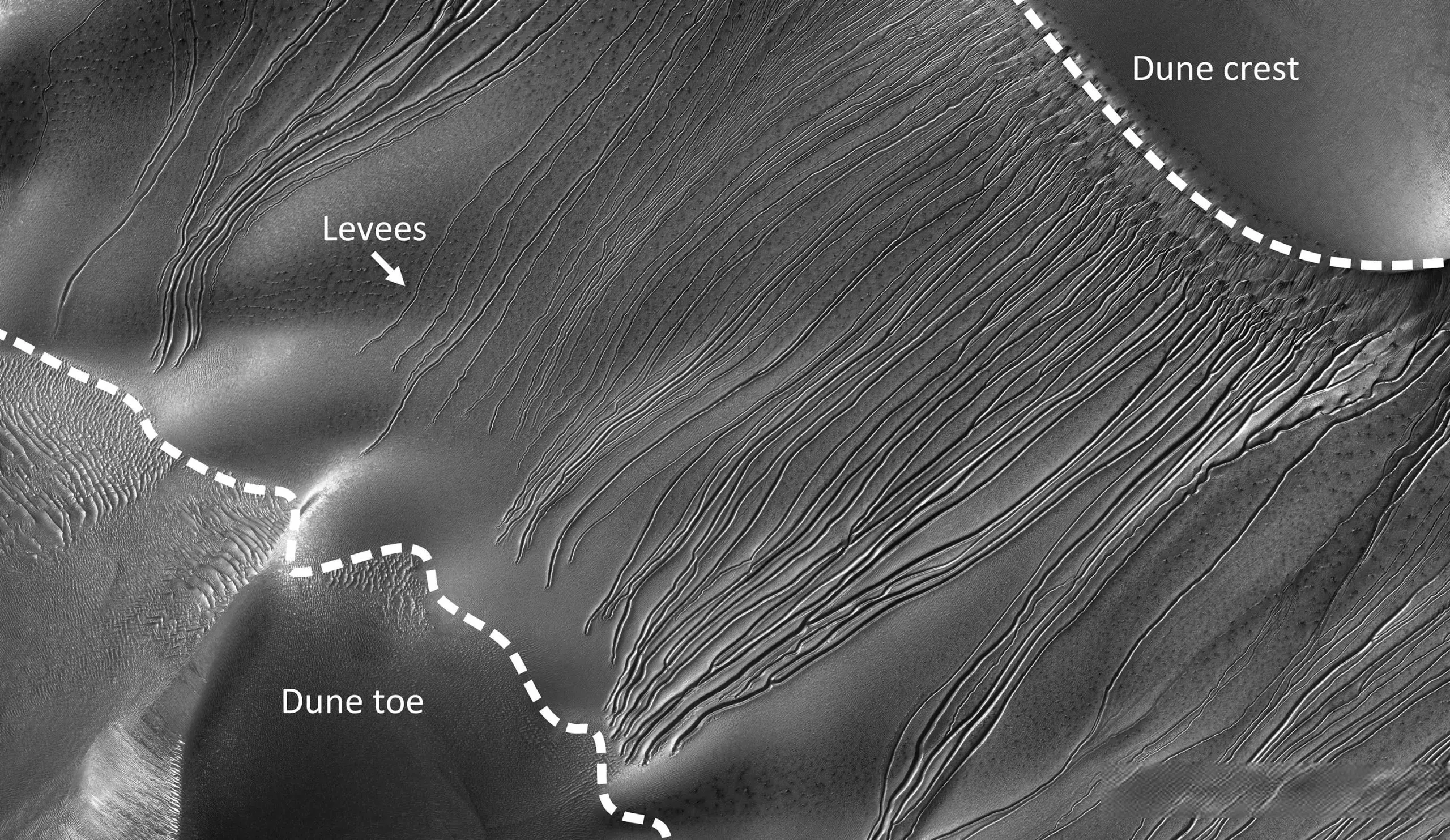 近日,荷兰乌得勒支大学的地球科学家通过实验揭示了火星沙丘上的奇异沟壑的成因。研究显示,这些沟壑并非生命活动所造,而是由冻干二氧化碳(CO₂)块在沙丘上滑落、穿钻形成的,这一过程在地球上从未被观察到。