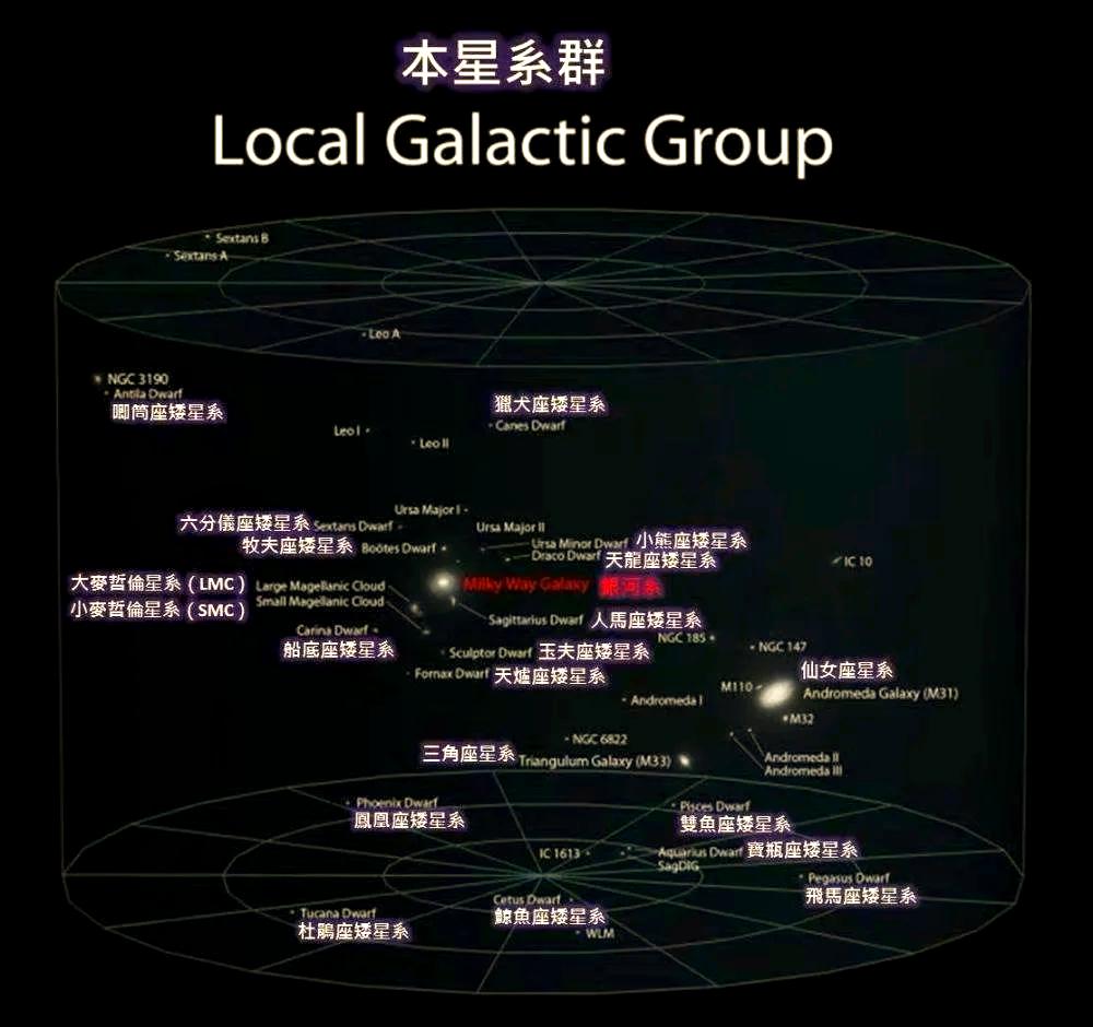 从银河系向外,可见由大约50个星系所组成的小群体,也就是本星系群,覆盖的范围达到了1000万光年,就好比宇宙的荧光群岛一样。但在这之上,还有更大的室女座超星集团,直仅达到了至少1亿光年,是大约2000个星系构成的更大天体系统。