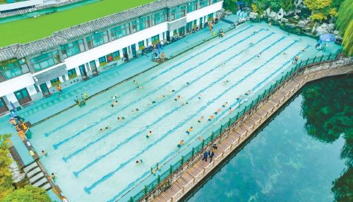 作为全国唯一以天然泉水为水源的开放式浴场,这里的核心吸引力在于“活水”——引自黑虎泉等泉群的泉水,每天彻底更换一次。得益于泉水的天然特性,浴场水温常年保持在15℃至18℃左右,形成了“冬天热夏天凉”的独特体感。