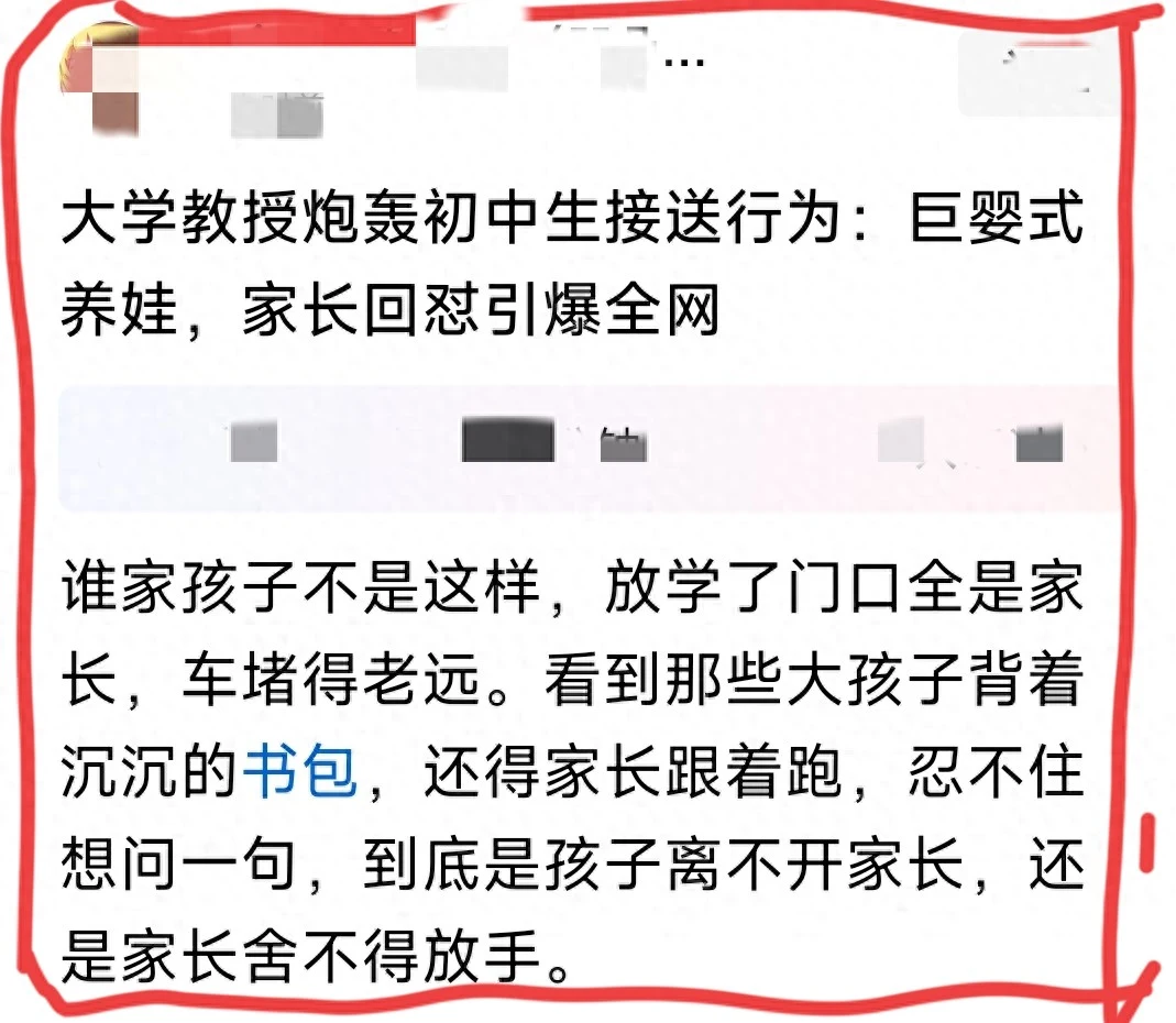 大学教授炮轰初中生接送行为是巨婴式养娃?别炮轰可怜的家长们了