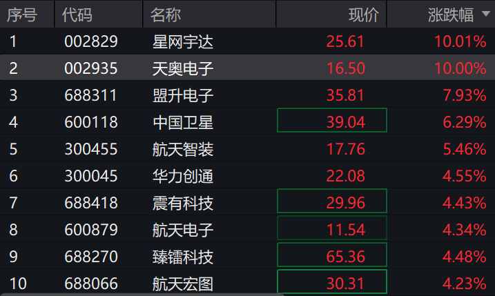 国产商业火箭 “批量上天”,卫星ETF(159206)早盘活跃,成分股星网宇达、天奥电子涨停!