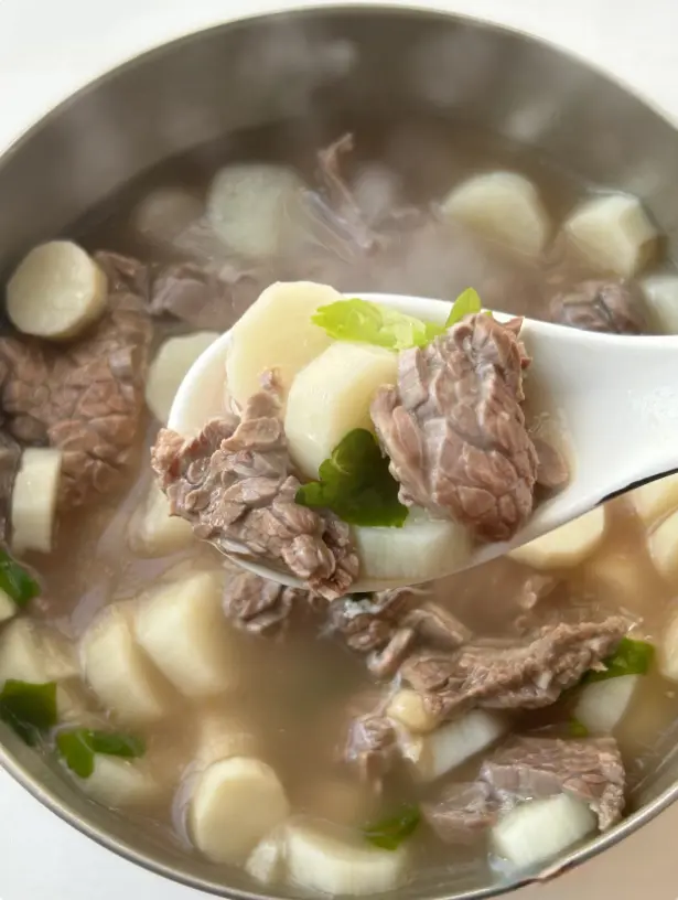 材料:大蒜末,适量山药,适量牛肉,少许盐,少许胡椒粉。