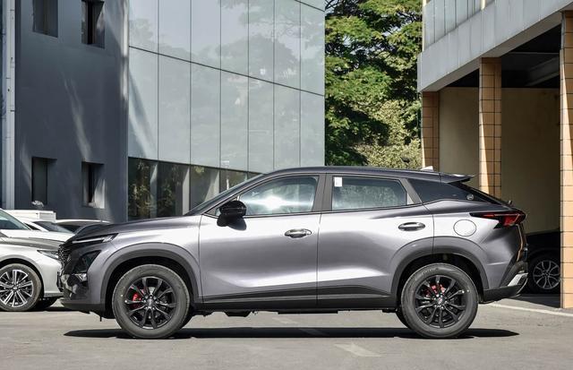 整车长宽高分别为4400*1830*1588毫米,轴距为2630毫米,车身造型是轿跑SUV风格,悬浮式车顶到了后方有了下溜趋势,后门把手上方的腰线硬朗,还有黑色轮眉、17英寸黑色轮毂以及镂空尾翼等,都营造出比较强的运动感,尾灯样式较为尖锐,中间由黑色饰板相连,双边两出排气筒被隐藏在了车底,而我们看到了只是镀铬装饰口而已。