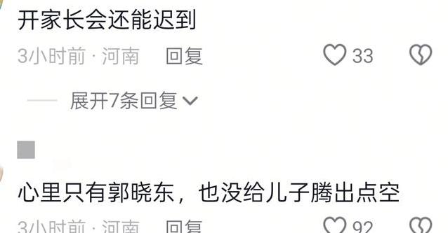 郭晓东在评论区的那句话虽然听起来像是埋怨老婆,但反过来想,他可能也是觉得老婆太辛苦了。毕竟照顾孩子的日常基本都是程莉莎在管,开家长会也是她去,丈夫确实应该多分担一些。网友们质问郭晓东为啥不去开家长会,这话问得挺有道理的,爸爸参与孩子教育也很重要。