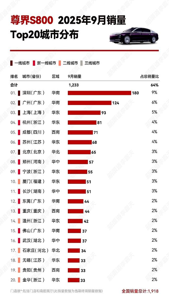 深圳、广州、上海、杭州等一线城市成为主要销售区域,其中深圳、广州单城销量就突破百台,凸显了其在高端消费群体的吸引力。