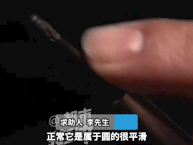 随后,车辆又被拉回4S店检查,售后发现是柴油加热针的问题,售后展示的加热针上,出现了明显的凹凸不平。