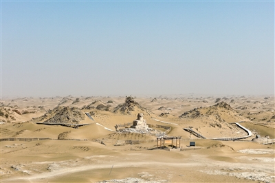 这是尼雅遗址内的佛塔(无人机照片,十月十七日摄)。