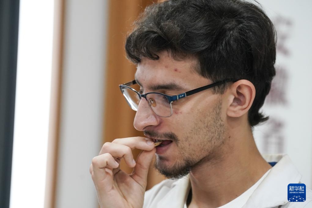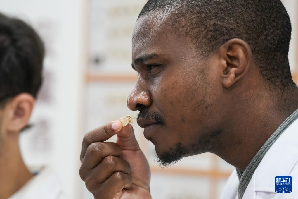 10月16日,来自阿尔及利亚的药学专业大二学生常健安学习辨别中药材黄芪。2024年,在本国学习生物化学的常健安通过考试,获得了来中国系统学习中医学和中草药的机会。