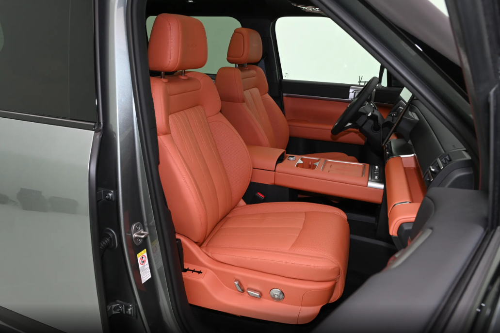 此外,内饰有三种配色:雪隐灰、日蚀蓝、暮云橙。我个人特别喜欢暮云橙,看着很有质感,夏天坐进去感觉都凉快几分,雪隐灰就比较沉稳,适合喜欢低调质感的人;日蚀蓝跟外观颜色呼应,年轻活力十足。材质方面,真的没话说,大面积都是皮质材料,摸上去软软的,中控台上方、车门板这些地方用的是软质搪塑,不会有硬塑料的廉价感,再搭配上金属饰条,档次一下子就上来了。