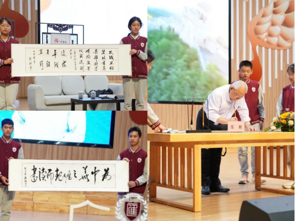 现场互动环节更是气氛热烈,学生们就航天研究的知识储备、遥感技术的未来突破等话题踊跃提问,陈院士一一耐心解答,并勉励大家要打好数学、物理等学科基础。活动尾声,学生代表向陈院士赠送了亲手创作的书法和剪纸作品。陈院士深受感动,现场挥毫,写下“攻城不怕坚,攻书莫畏难”与“为中华之崛起而读书”的寄语,激励学子们勇攀科学高峰。