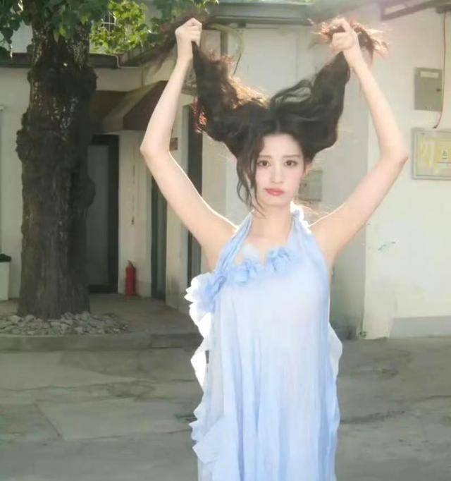 发型只是将黑色头发染成了红棕色,没有任何的烫卷,给人一种仙气飘飘的即视感。