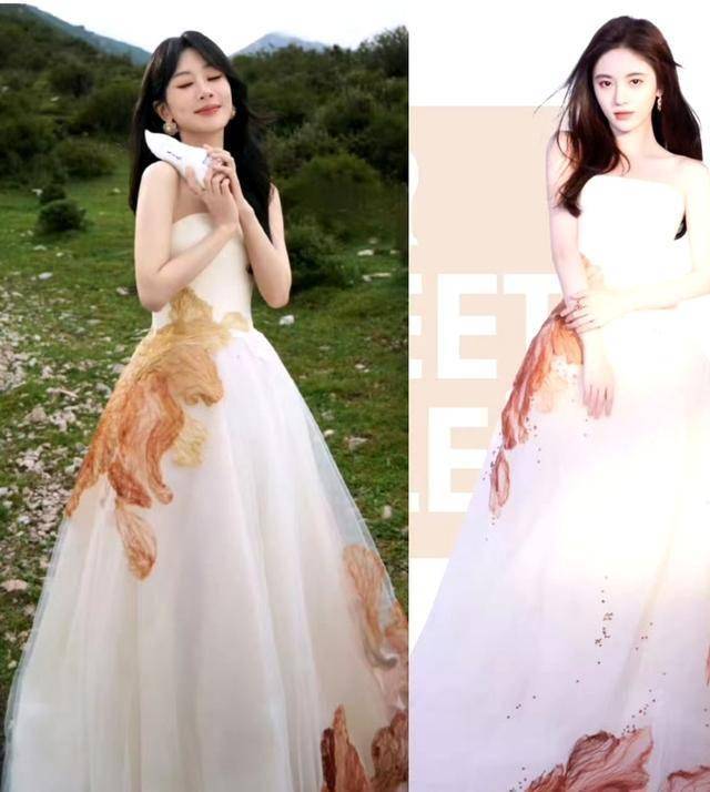 最近杨紫的广告,放出了花絮,然后细心的网友们发现杨紫身上的礼服,和鞠婧祎在2019年登上某个策划的礼服一模一样。