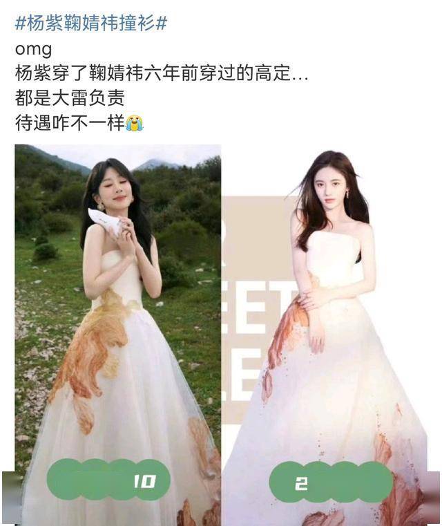 鞠婧祎和杨紫穿这一款礼服,间隔时间已经有6年之久了。